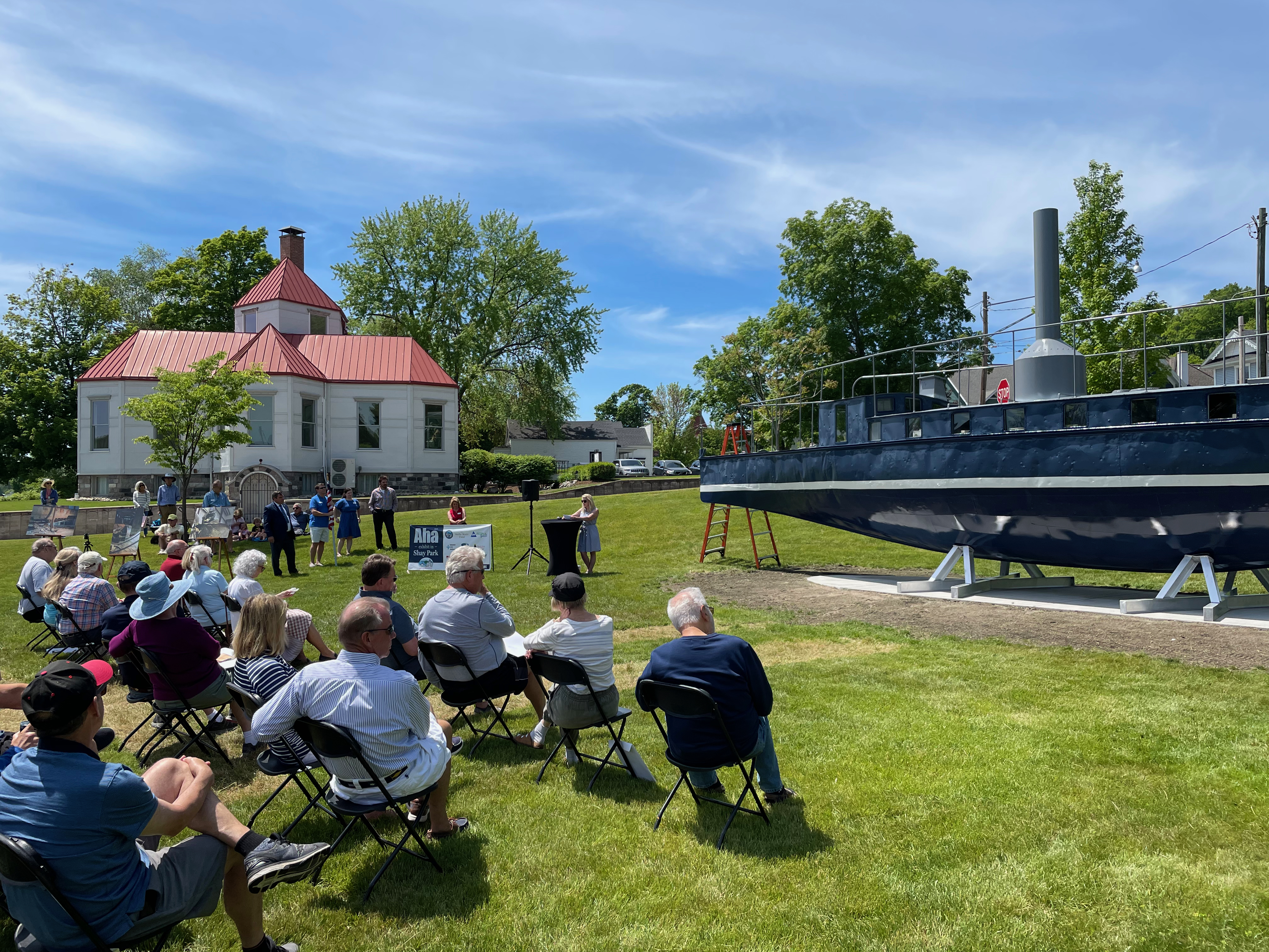 The Society worked in partnership with students at the Industrial Arts Institute in Onaway, Michigan from December 2019 until July 2021 to repair the dilapidated vessel. Plans were finalized with the City of Harbor Springs and the vessel was installed in Shay Park in 2021.
